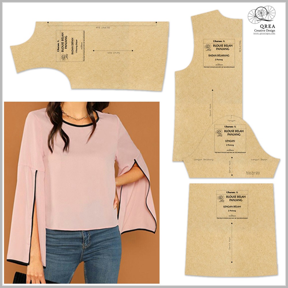 Jual Pola Instant Blouse Tangan Belah Panjang Modern Simpel Pola Jahit Shopee Indonesia